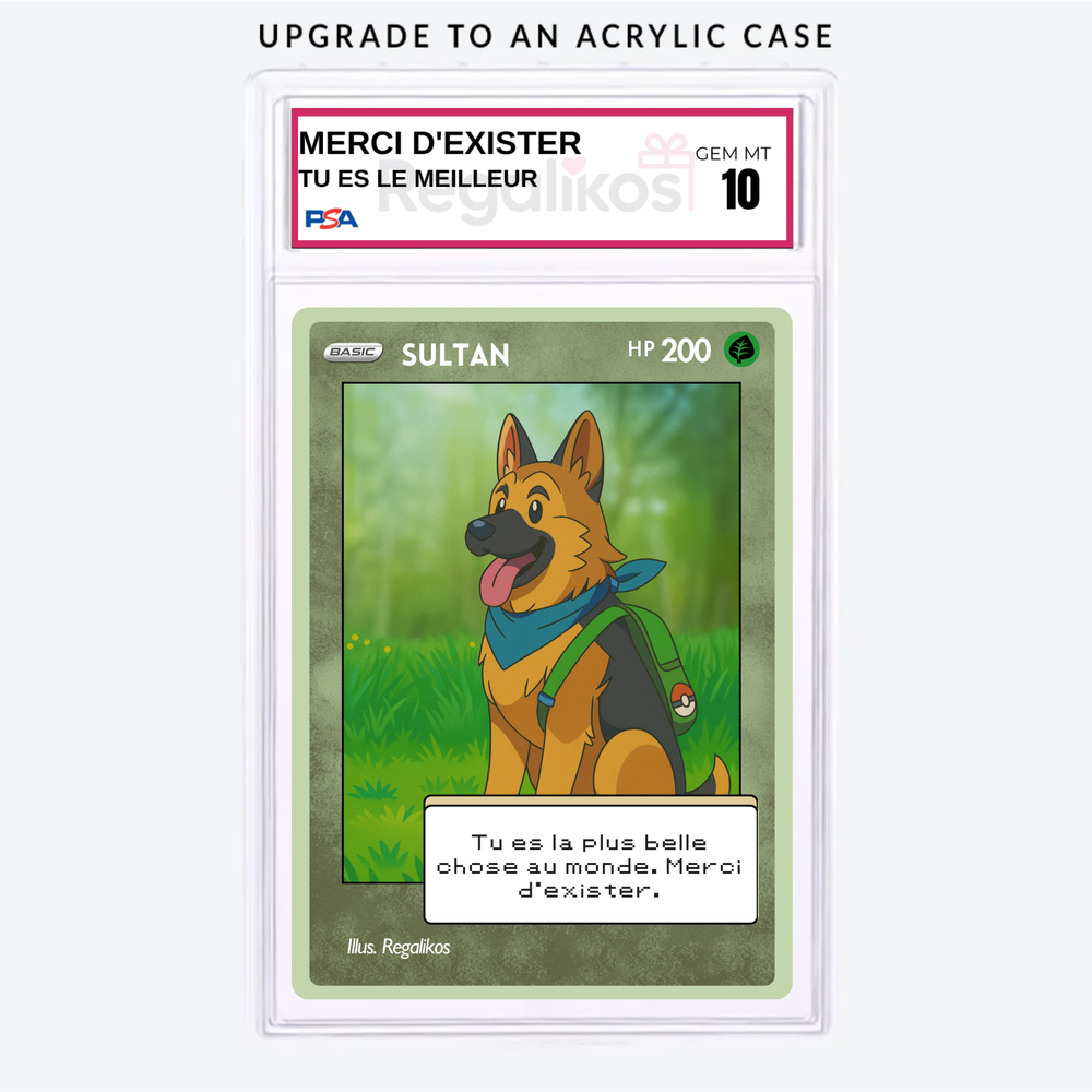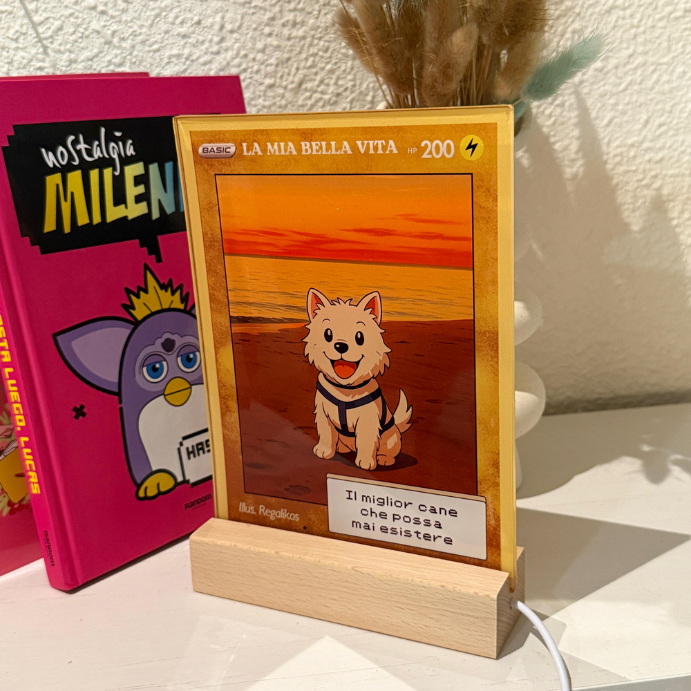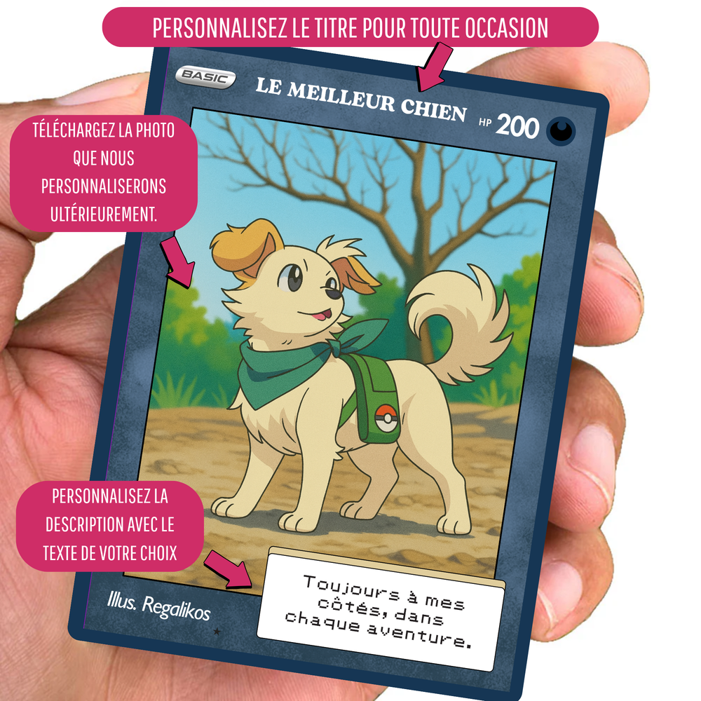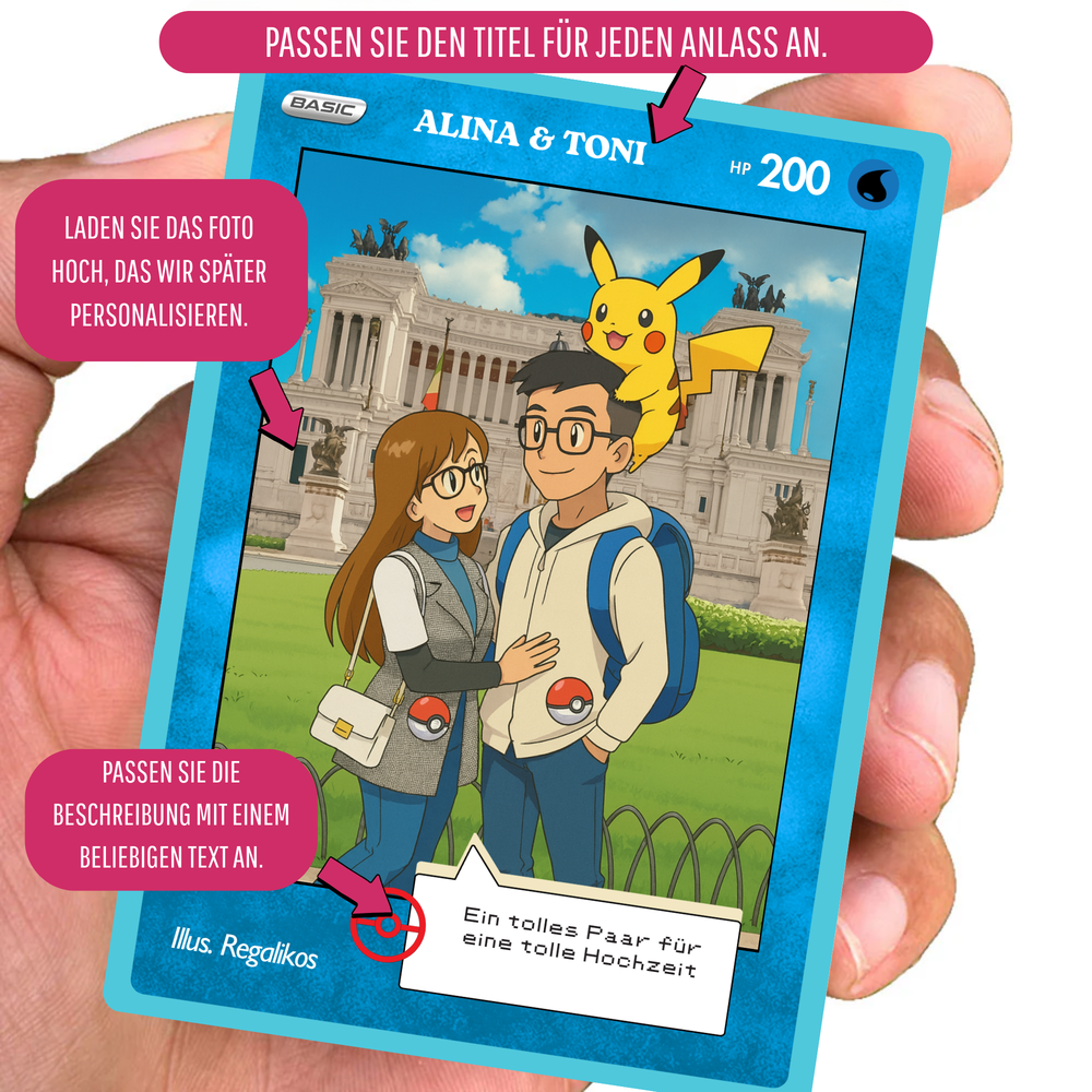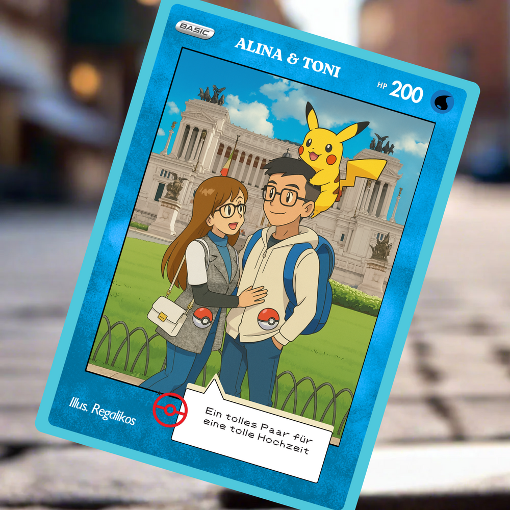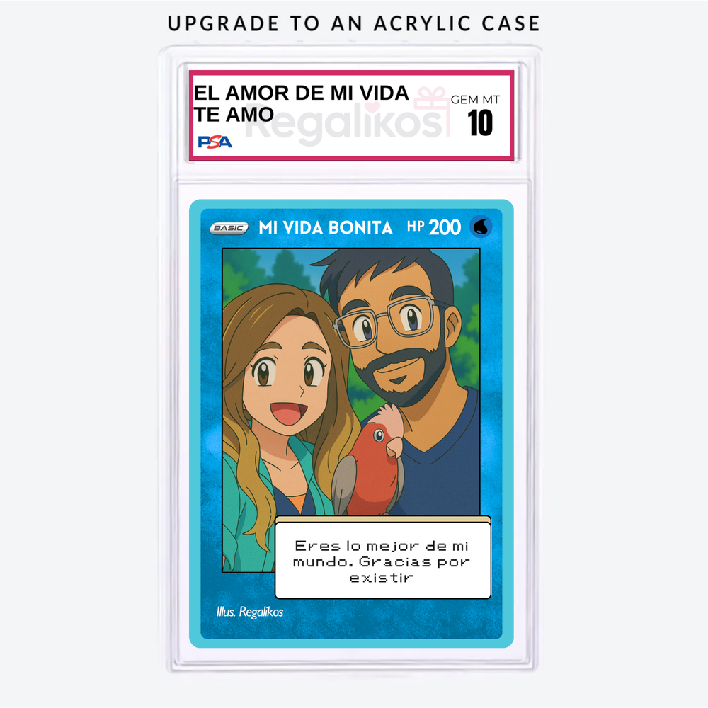 Puedes personalizarla con el nombre, una frase divertida o romántica, y hasta una dedicatoria secreta, al más puro estilo de las cartas más míticas del universo Pokémon. Con un diseño brillante, resistente y lleno de nostalgia, esta carta no es solo un regalo, ¡es una reliquia para toda la vida! ⚡️❤️
